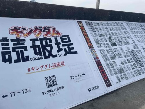 東与賀の防波堤には、キングダム全巻を読める漫画のコマがずらりと並んでいて迫力満点です!